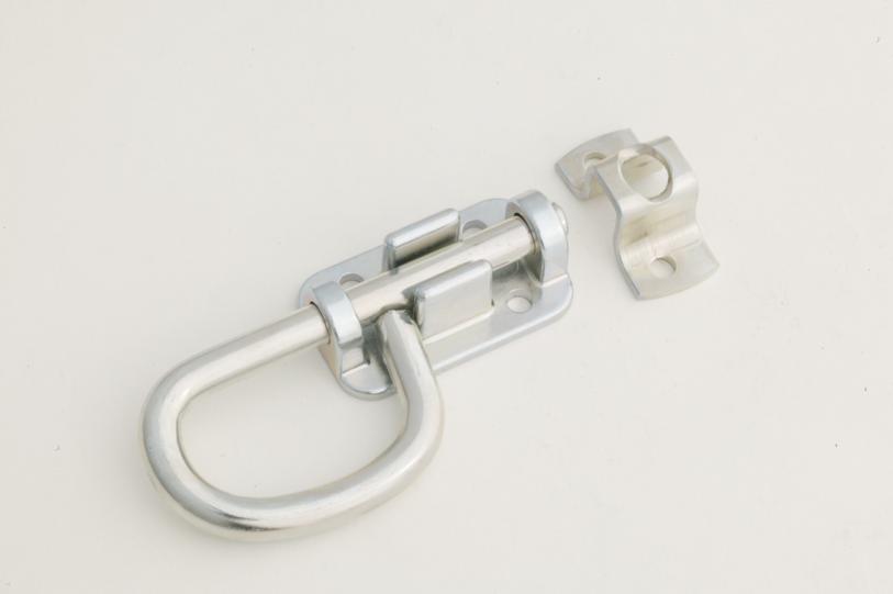 Engert's Handle Latch Bolts shown above are approximately 3¼" wide with a 9/32" steel rod handle and zinc die-cast mounting plate. These latches are available in chrome, black, brass, and zinc finishes. Mounting screws in matching colors provided.
